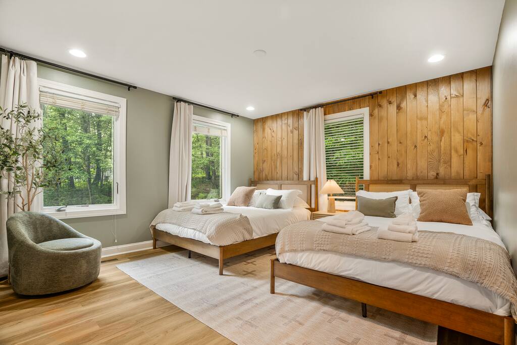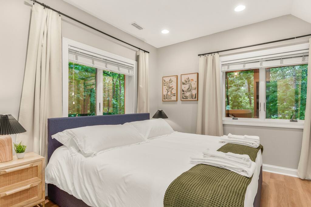 All bedrooms feature comfy memory foam hybrid mattresses, blinds, and blackout curtains to ensure a restful night’s sleep.