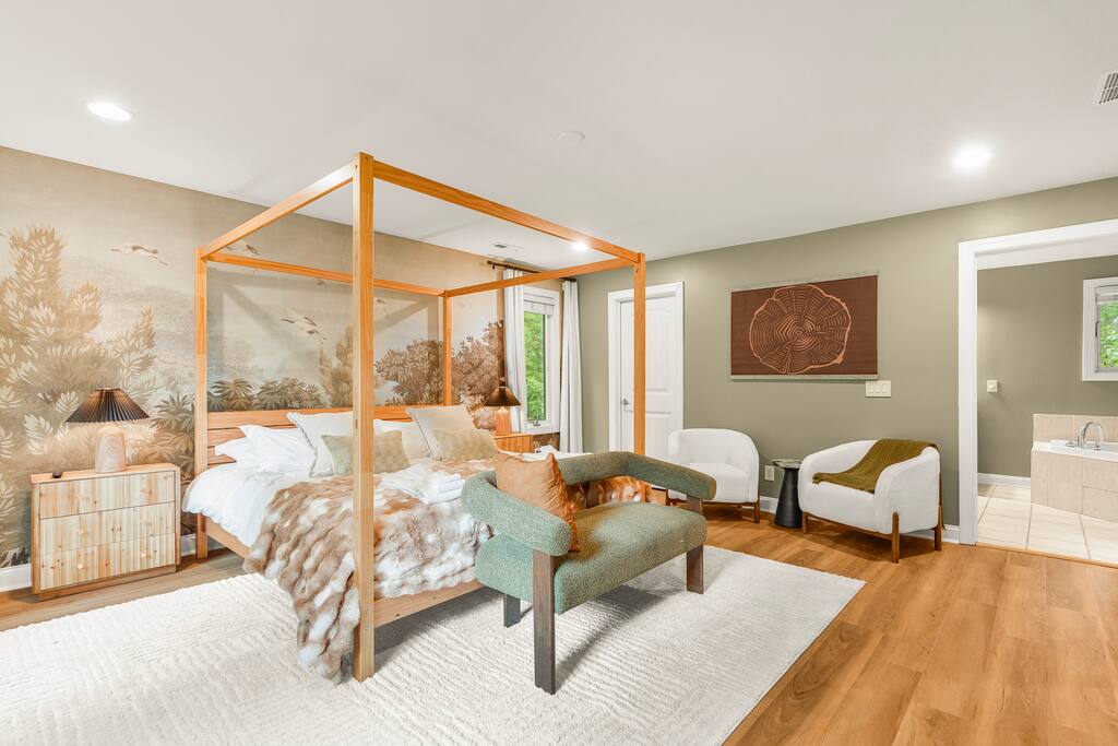 - Spacious master suite (Room 1) featuring a king-size canopy bed, a walk-in closet, a 55" smart TV, and a luxurious spa-like bathroom with a soaking tub-perfect for unwinding after a day of adventure.