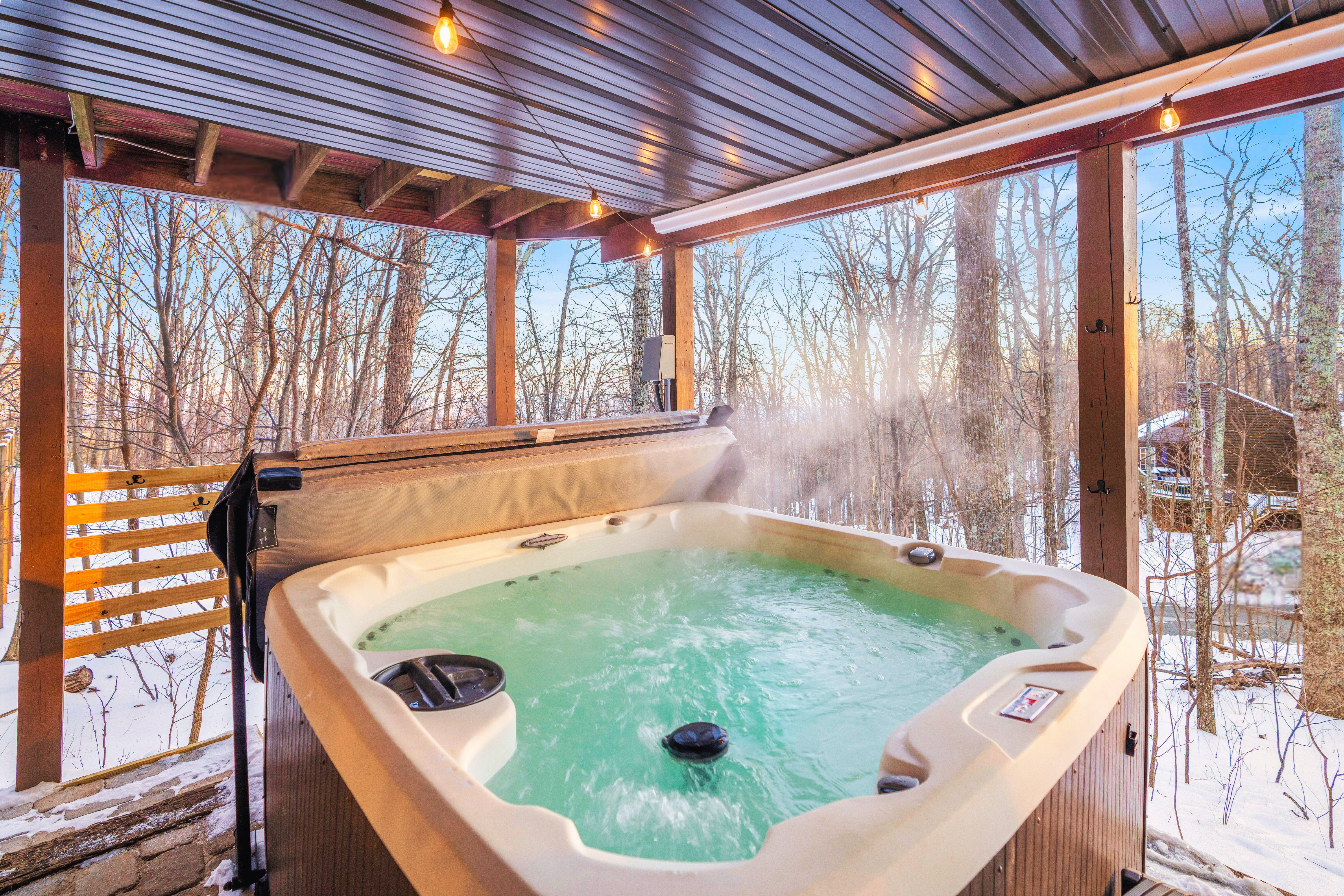 - Brand-new paved patio “garden room” with a new 7-person hot tub (hot tub towels provided), large hammock for two during the warmer months (perfect for afternoon naps), and cozy seating to relax the day away.